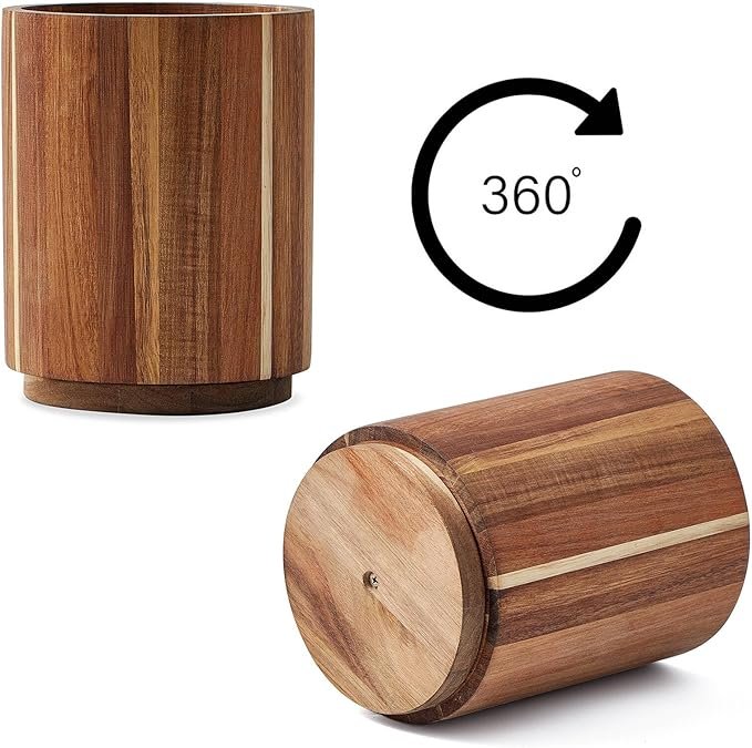 Acacia Wood 360° Rotating Utensil Holder for Kitchen Counter, 7.2″ Crock