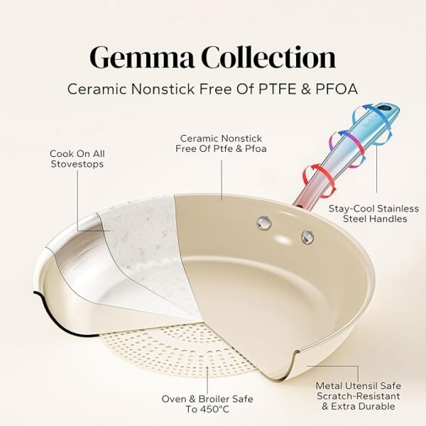 Healthy Ceramic Coating: Natural ceramic surface is free of Teflon, PFAS, PTFE, PFOA, lead, and cadmium for safe, non-toxic cooking.