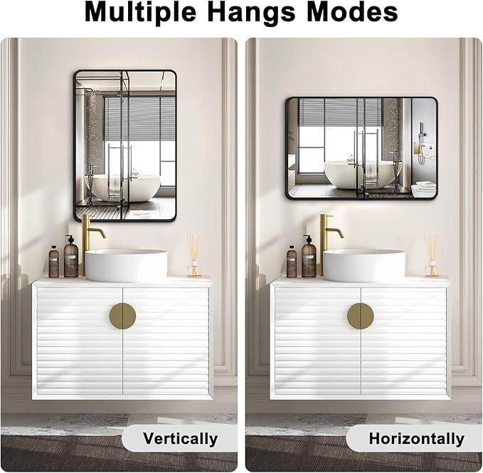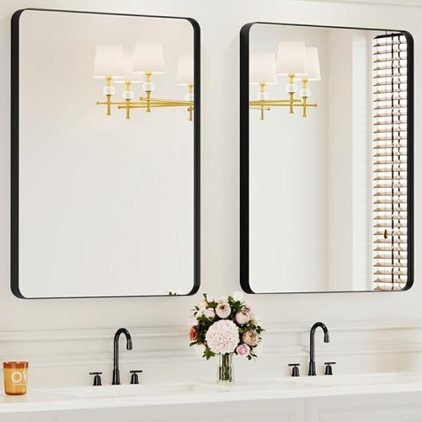 2-Pack Bathroom Vanity Mirrors 24×36, Black Metal Frame Rectangle Wall Mirrors, Horizontal or Vertical Mount