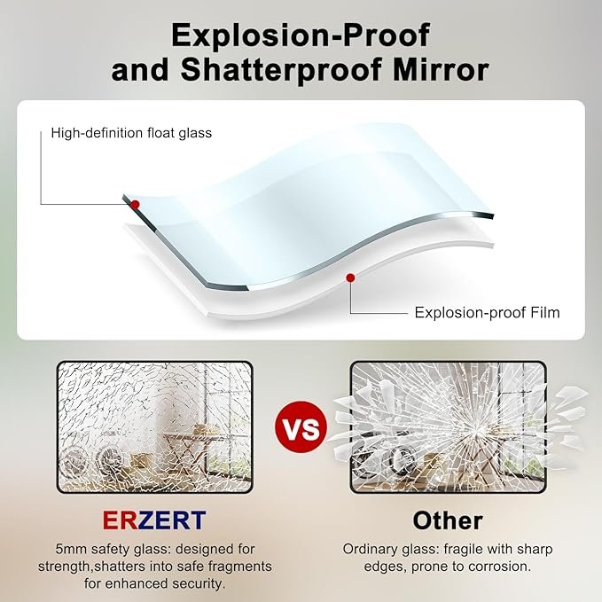 • HD, Distortion-Free Reflection: Made with high-definition float glass for clear, vivid imaging that brightens spaces and enhances depth.