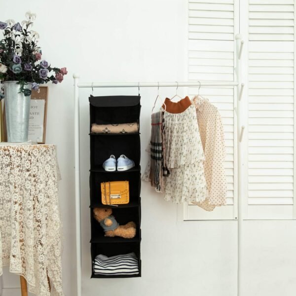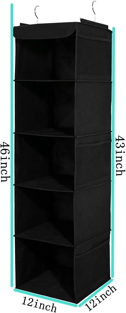 Two-Pack Hanging Storage: Includes 5 fabric shelves and 6 side pockets for organizing clothes, shoes, and accessories.