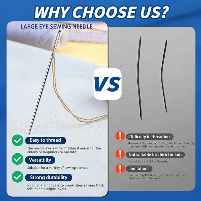 Wide Application – Ideal for hand sewing, embroidery, knitting, quilting, crafts, fabric repair, and leather stitching.