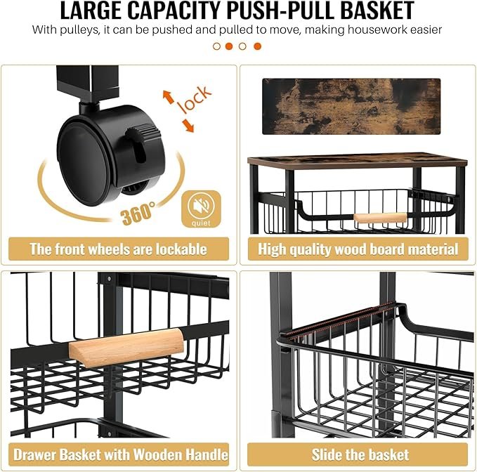 Multi-Purpose Use – Features 4 pull-out baskets ideal for storing fruits, vegetables, spices, dishes, toys, books, and more. Easy-access design improves convenience.