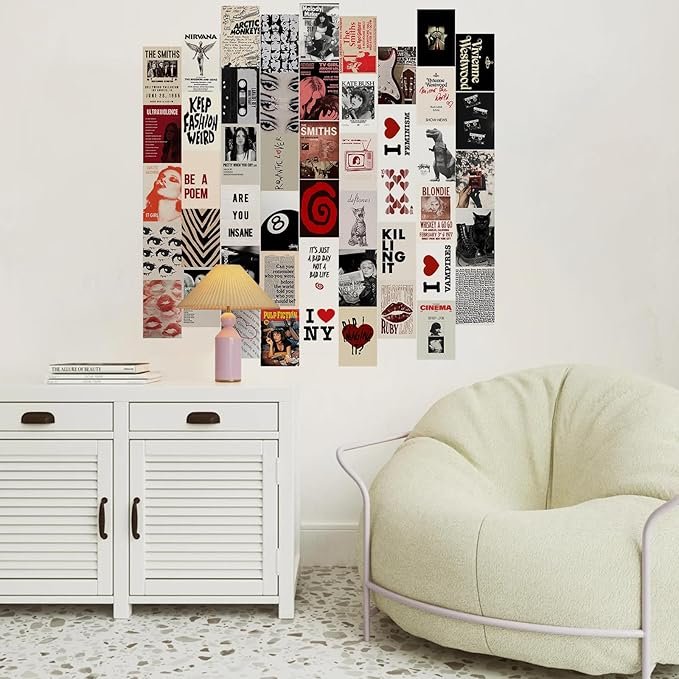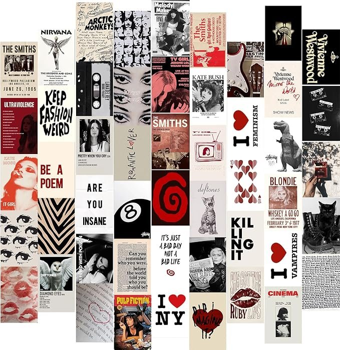 Downtown Girl Aesthetic Wall Collage – Includes 50 Y2K-style prints (4×6″) perfect for dorms, bedrooms, and apartment décor.