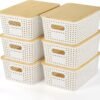 Stylish and Practical Design: Woven-style baskets with bamboo lids blend with home décor while organizing kitchen, office, toys, or bathroom items.