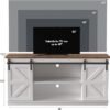 Farmhouse Wood & Metal Design: Supports TVs up to 65″ and also works as a stylish storage cabinet for décor and photos.