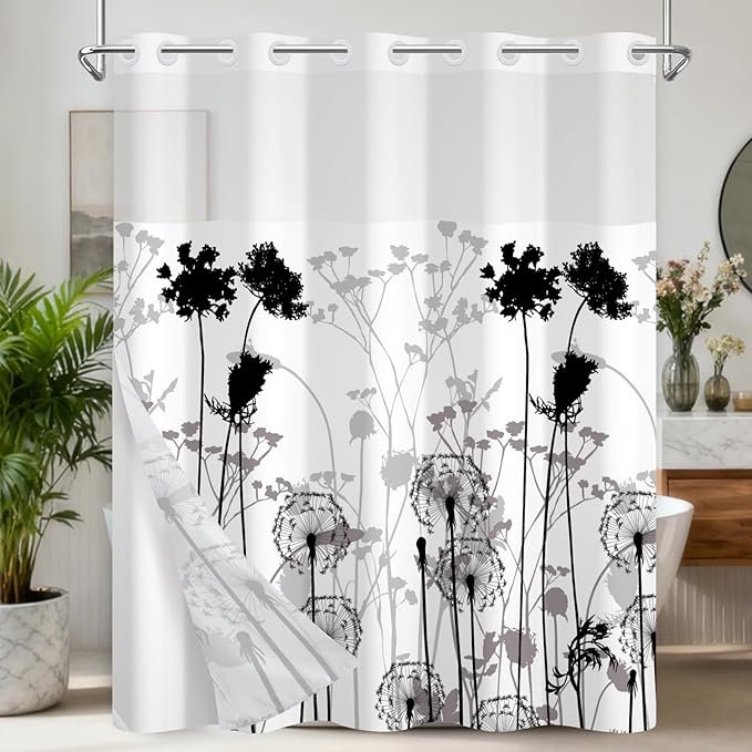 Modern Dandelion Design: Black and white abstract dandelion pattern adds minimalist sophistication and artistic charm to any bathroom.