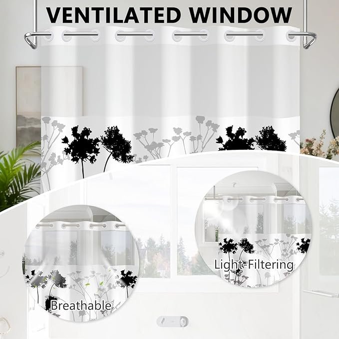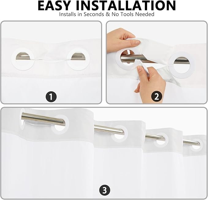 Hook-Free Installation: Integrated split rings allow instant hanging without removing the shower rod for quick, hassle-free setup.