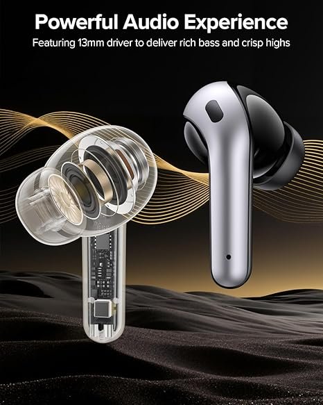 Clear Calls & Immersive Sound: 13mm drivers with triple-layer diaphragms deliver rich bass and crisp highs. Built-in mics with CVC noise reduction ensure clear phone calls; supports mono and stereo modes.