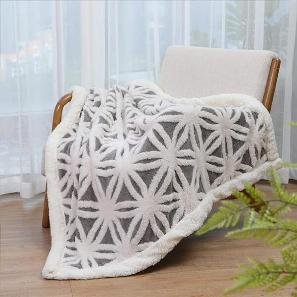• Dual-Sided Comfort – Ultra-soft coral fleece jacquard on one side and plush Sherpa on the other for warmth and coziness.