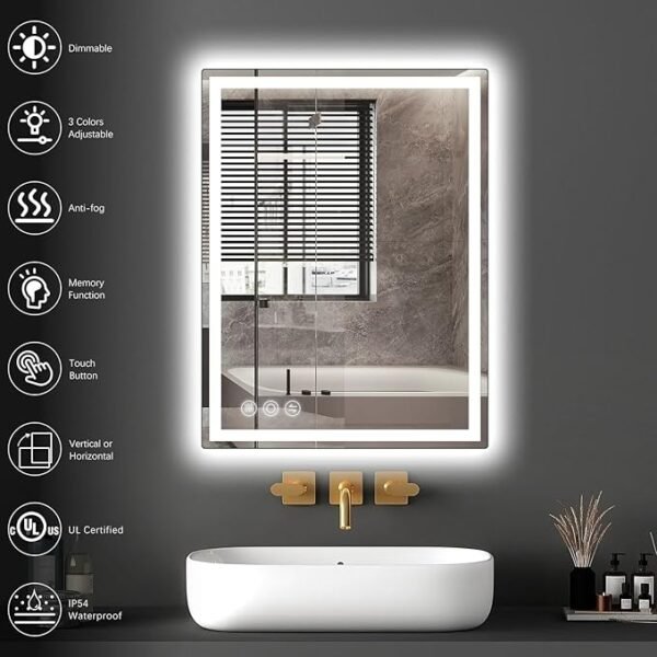 Be the first to review “LED Bathroom Mirror 20×28, Front & Backlit, Anti-Fog, 3 Color Temp Dimmable, Memory Glass”