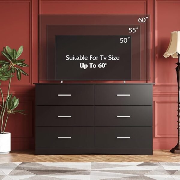 Large Storage Capacity: Six spacious drawers and a wide top surface provide room for clothes, books, décor, plants, photos, and daily essentials.