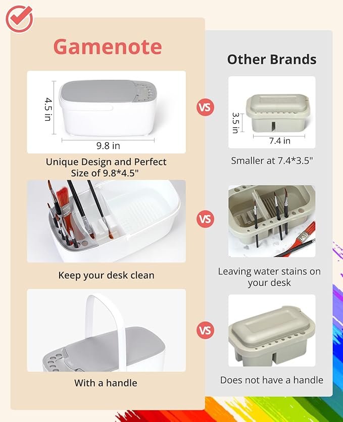 Mess-Free Organization – Separate brush holder keeps brushes upright while drying and protects tables from spills or drips.