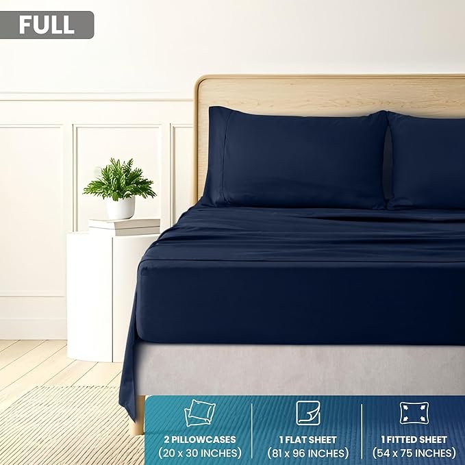 Complete 4-Piece Queen Sheet Set: Includes 1 flat sheet (90″x102″), 1 fitted sheet (60″x80″) with 15″ deep pockets, and 2 pillowcases (20″x30″). Soft, breathable, and durable for everyday comfort.