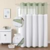 Waffle Weave No-Hook Shower Curtain with Liner, Mesh Top, Sage Green 72×75