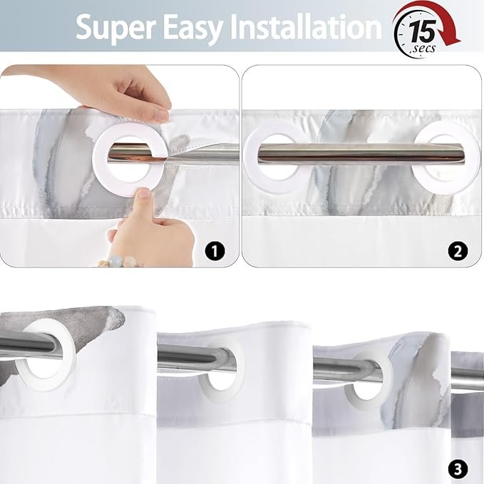 • Easy No-Hook Installation: Hang in seconds without removing the shower rod. Smooth-glide hook-free rings make daily use effortless.