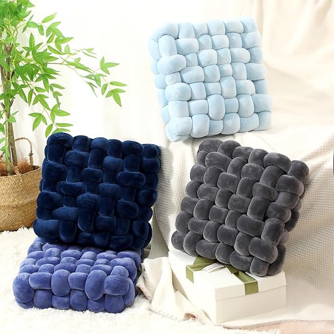 Package Includes – Set of 4 square knot pillows, each measuring approx. 12 × 13 inches, perfect for creating a cohesive décor look on sofas, beds, or couches.